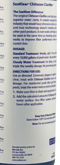 SeaKlear Natural Clarifier works better and does more than other clarifiers. SeaKlear Natural Clarifier has been proven reliable at safely keeping pools clear, easily and effectively. For best results use weekly.