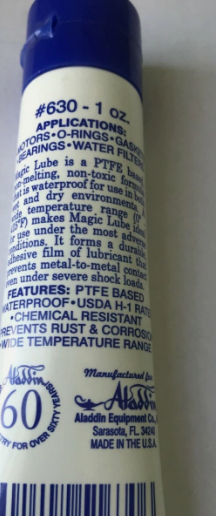 Designed by leading o-ring and gasket manufacturer Aladdin, Magic Lube was created as an alternative to petroleum based lubricants that corrode rubber and cause leakage.  Magic Lube is Teflon based and safe for use on most rubbers, plastics and metals.