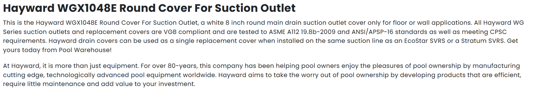 Hayward WGX1048E 8-Inch White Main Drain Cover Replacement