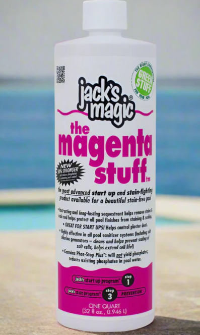 • The Magenta Stuff is the most advanced start-up and stain-fighting product available for a beautiful, stain-free pool!
