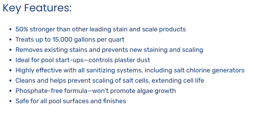 REMOVES METALIC STAINS AND SCALING AND REDUCES PHOSPHATES